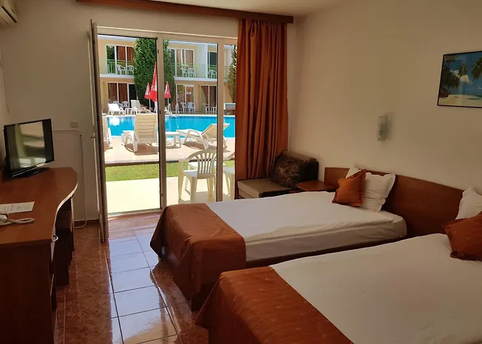 The property is placed in the Sunny Beach Beachfront district, within 2.7 km from such family-friendly attractions as Sunny Beach Amusement Park. This hotel is 10 minutes by car from Sunny Beach and a short walk from Majestic Beach Resort Beach. Nature lovers will appreciate the proximity to Sunny Beach, which is nearly a 5-minute walk away. Carina Beach Aparthotel is located around a 5-minute walk from Helenas beach. Helena bus stop is about a 5-minute walk away.